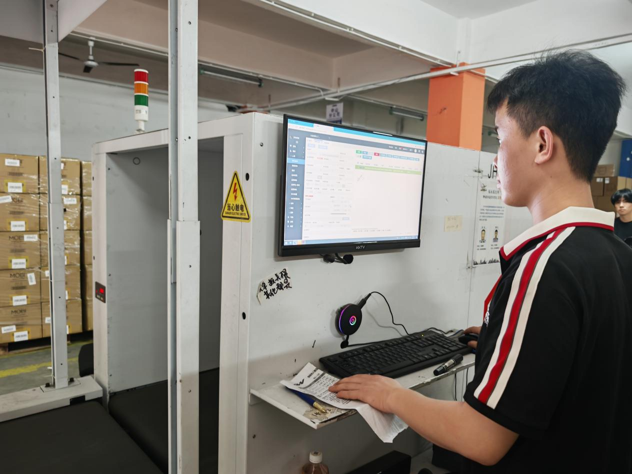 工人在操作包裹查验机 图片来源:每经记者 孔泽思 摄